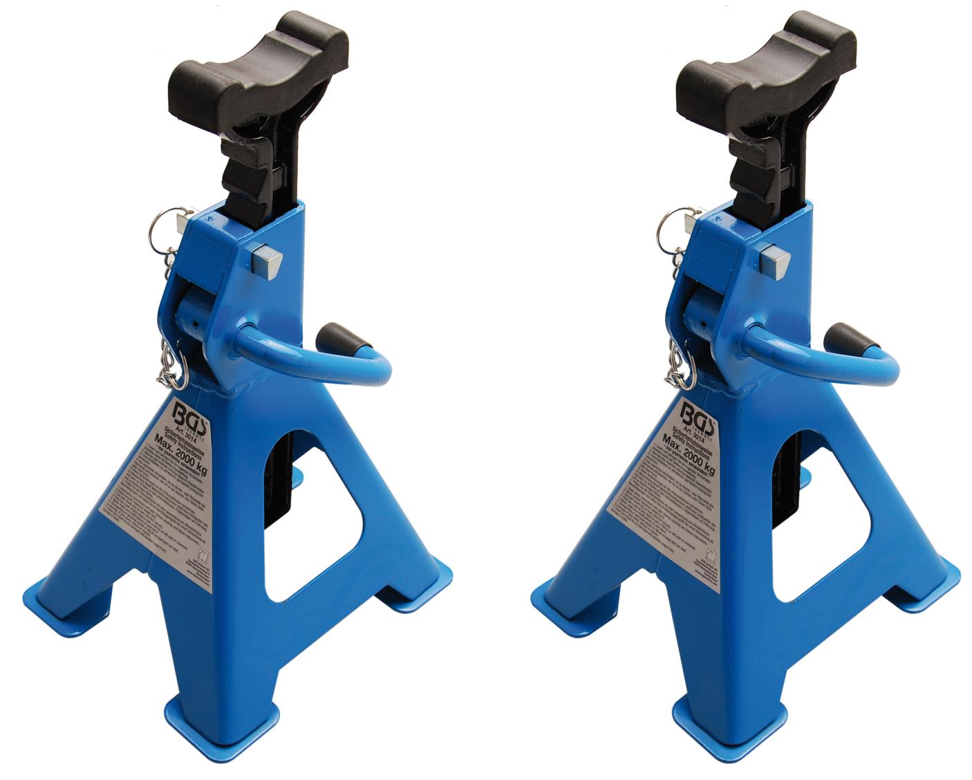 1 Paar Unterstellböcke für Gewichte bis zu 2 Tonnen. Von 278 bis 423 mm Höhe regulierbar.