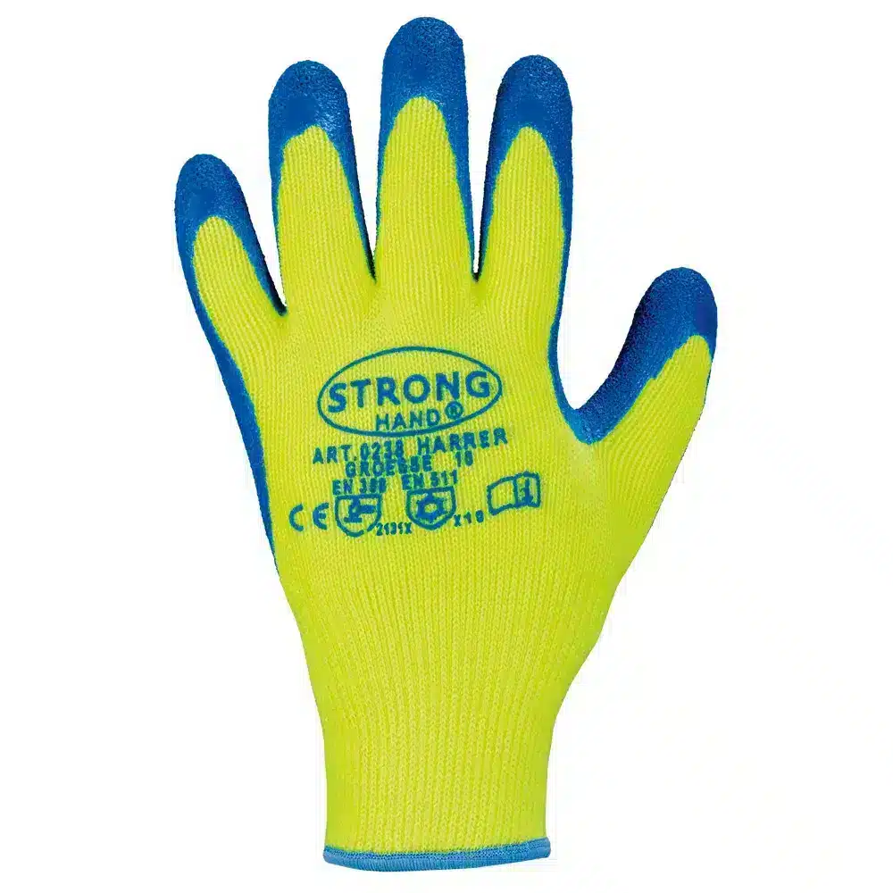 • Beschichtung: Schrumpf-Latex, blau – für hervorragende Wasserabweisung und Griffsicherheit.