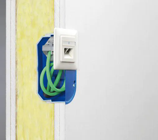 Akustische Hohlwanddosen helfen die schalldämmenden Eigenschaften der Schallschutzwände zu behalten, und schaffen Platz für elektronische Kommunikationsmodule, Kabel, Klemmen usw. Bei der Verwendung von klassischen Hohlwanddosen würden sich die Werte deutlich verschlechtern.