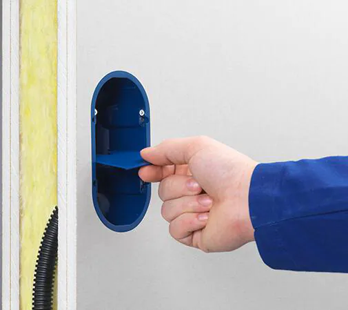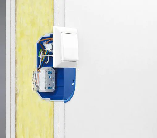 Die Oberfläche der akustischen Hohlwanddose verhindert die Verbreitung von Schall in die Nachbarräume.