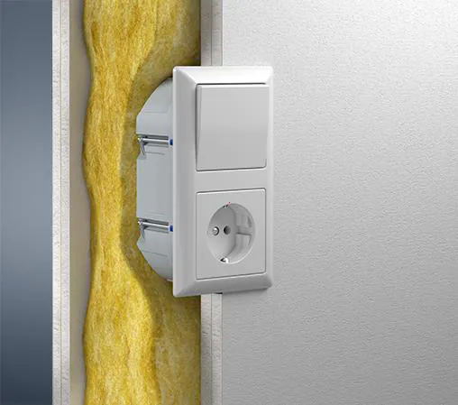 Die akustische Doppel-Hohlwanddose kann man auch als eine Kombination von Steckdose und Schalter verwenden.