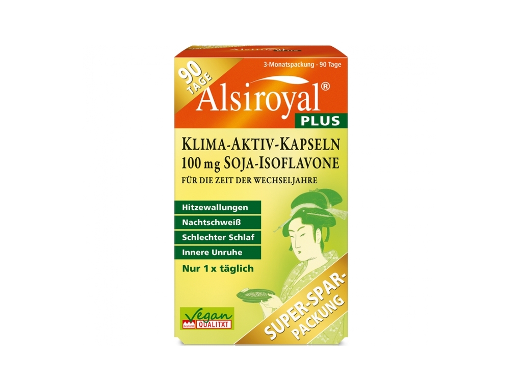 Alsiroyal® “PLUS Klima-Aktiv Kapseln 100 mg Soja-Isoflavone” enthält pro Tag 150 µg Biotin. Biotin kann bestimmte Labortests (Blutuntersuchung) beeinflussen. Daher informieren Sie bitte Ihren Arzt über die Einnahme, sollte bei Ihnen ein solcher Test durchgeführt werden.