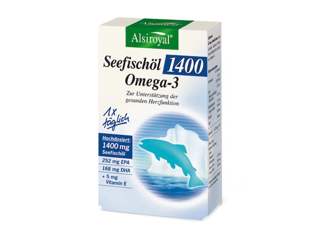 Alsiroyal Seefischöl 1400 Omega-3 enthält mindestens 35% Omega-3-Fettsäuren, insbesondere EPA und DHA, welche die gesunde Herzfunktion unterstützen. Das enthaltene Vitamin E trägt zum Schutz der Zellen vor oxidativem Stress bei. Da der Körper Omega-3-Fettsäuren nicht selbst herstellen kann, ist es wichtig, auf eine ausreichende Versorgung über die Ernährung zu achten. Gute Quellen sind Lachs, Hering und Makrele. Doch Fisch ist nicht jedermanns Sache. Alsiroyal Seefischöl 1400 Omega-3 ist eine sinnvolle Ergänzung für alle, die über ihre Ernährung auf die Gesundheit ihres Herzens achten wollen.