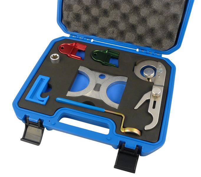 Dieses professionelle und funktionelle Spezialwerkzeug ist als Arretierwerkzeugsatz für Opel Ecotec V6-Motoren mit Mehrventiltechnik einzusetzen. Der robuste Motoreinstell Werkzeug Satz enthält die wichtigen Spezialwerkzeuge wie die Kurbelwellenarretierung, die Einstelllehre der Nockenwelle, das Haltewerkzeug für den Zahnriemen und Werkzeuge zur Blockierung der rechten Nockenwelle und zur Blockierung der linken Nockenwelle. Wir haben für Sie unter “Technische Details” die Opel Modelle aufgeführt für die dieser spezielle Arretierwerkzeug Satz 5 teilig zur Anwendung kommt. Um in der modern geführten Fachwerkstatt von heute, wo reibungslose Abläufe selbstverständlich und notwendig sind und wo Zeit knapp bemessen ist, effizient und wirtschaftlich zu arbeiten, sollten Spezialwerkzeug Sätze wie dieses Motoreinstell Werkzeug für Opel V6 grundsätzlich zur Verfügung stehen.