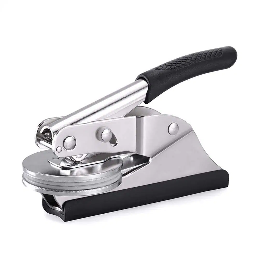 Mit dem runden Einsatz kann maximal mit etwa 20 mm Platz zum Rand des Papiers geprägt werden. Bei dem eckigen Einsatz kann der Abstand sogar bis zu 30 mm betragen.