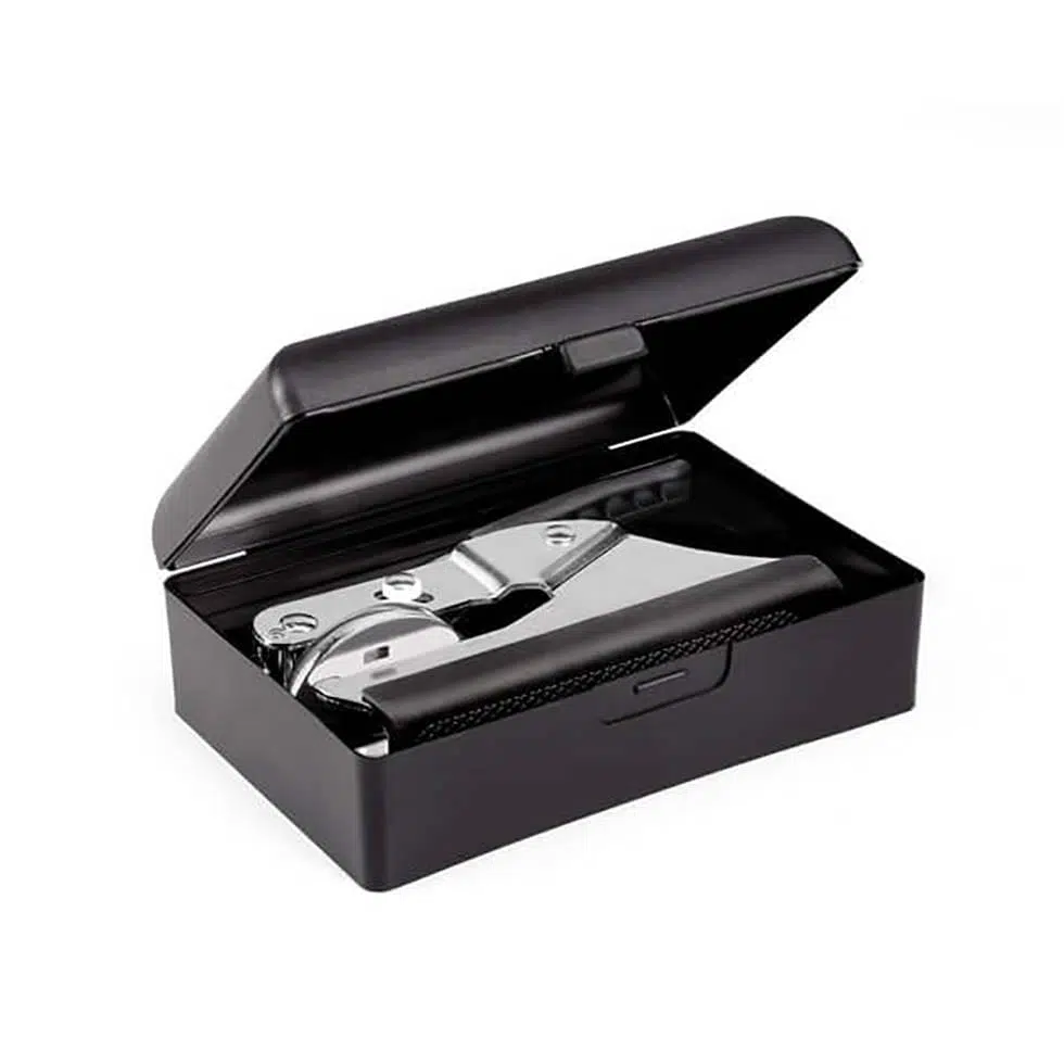 Soll das Logo im oberen Bereich geprägt werden, muss die Zange von oben angesetzt werden.