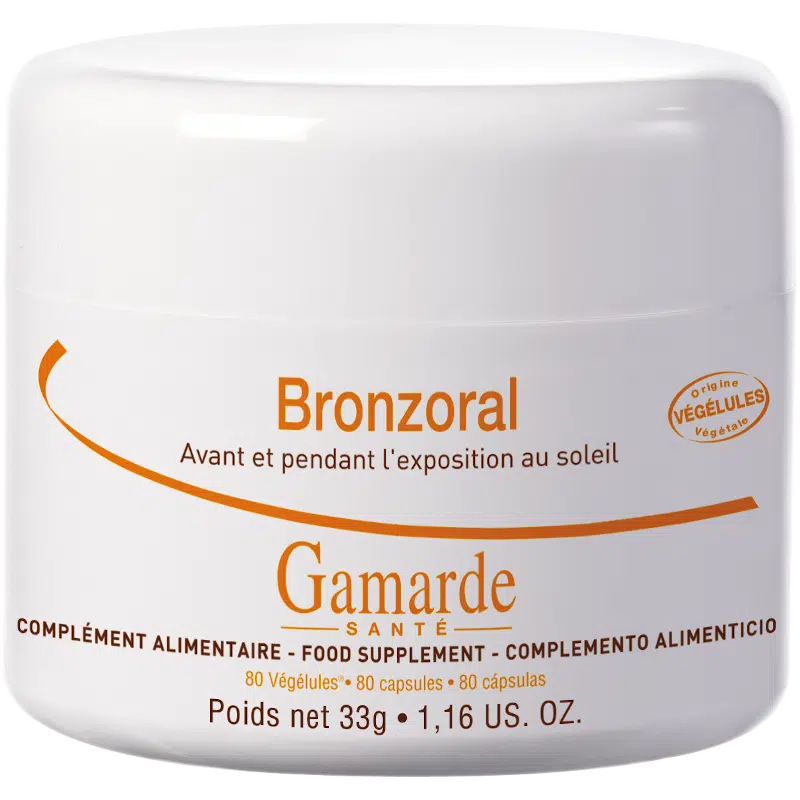 Pour et pendant les bains de soleil. Contient des vitamines C et E, du zinc et du sélénium, qui aident à protéger les cellules du stress oxydatif. Le zinc aide au maintien d’une peau normale fragilisée par l’exposition au soleil. Le bêta-carotène végétal accompagne harmonieusement l’effet bronzant.