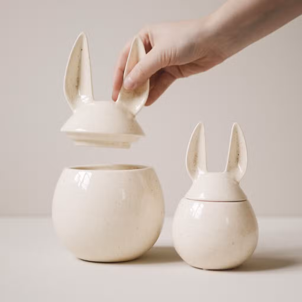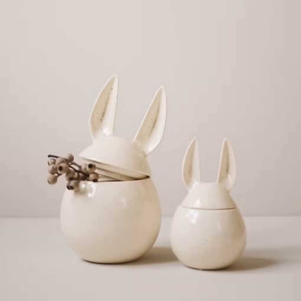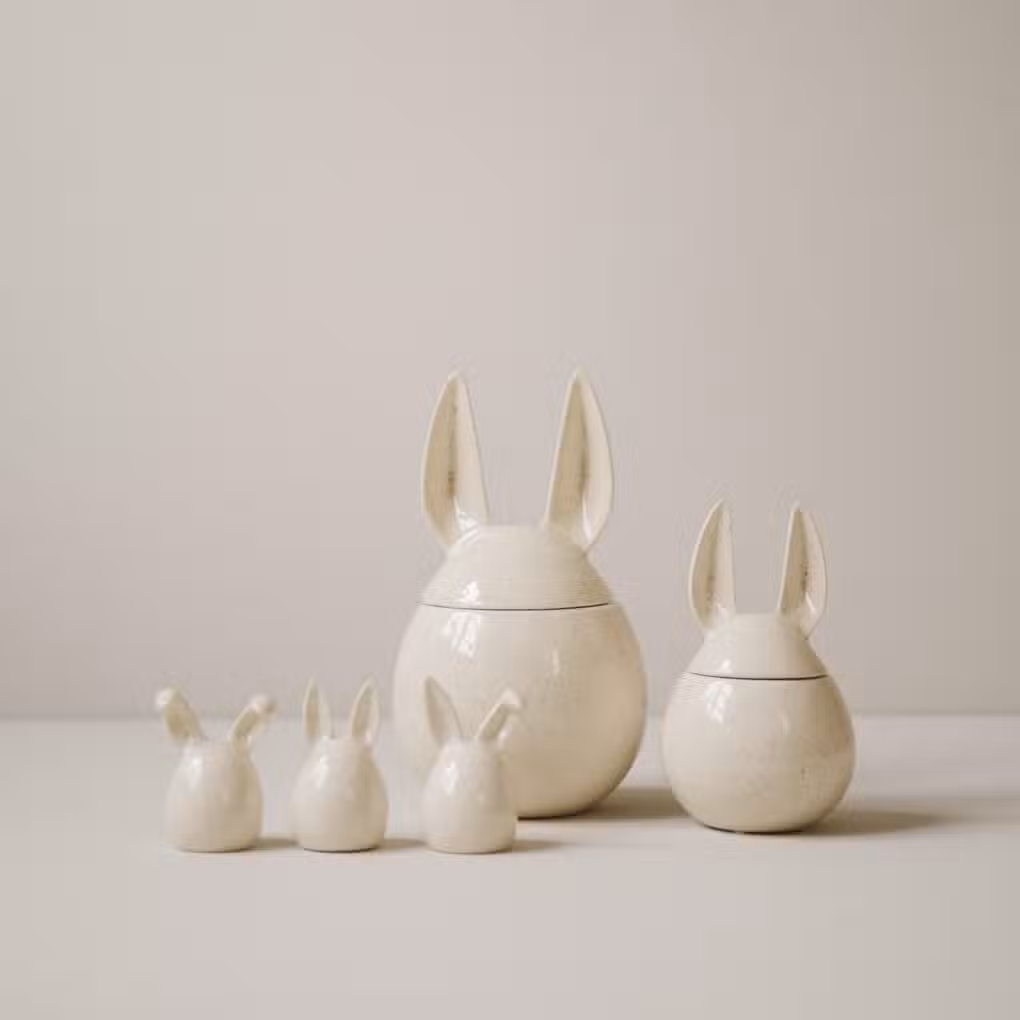 Der DBKD Osterhase Eating Rabbit Vanilla S misst in der Small Version Ø 8 x H 14 cm und ist die perfekte Aufbewahrungsdose für leckere österliche Süßigkeiten. Die creméfarben Hasen sind aufwendig von Hand aus Keramik gefertigt. Die Oberfläche der Hasen ist glatt. Ein schönes Detail sind die Formen der Ohren und der Puschel auf der Rückseite. Die Eating Rabbit Osterhasen gibt es in unterschiedlichen Größen und Farben und sind besonders schön sind sie in der Kombination mit unterschiedlichen Artikel der Artikel von Design by Karin Dahlin.