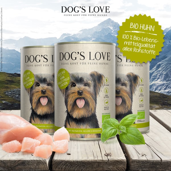 Darüber hinaus enthält das leckere Dog’s Love Bio Hundefutter mit Huhn keine Zusätze wie Gluten, Getreide, Zuckerzusatz, Soja, Farbstoffe, Knochenmehl oder Schlachtabfälle. Einzig hochwertiges Bio-Fleisch und Bio Gemüse und Obst.