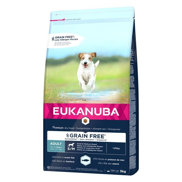 Eukanuba Grain Free Adult – Getreidefreies Trockenfutter mit Lachs, Huhn oder Ente