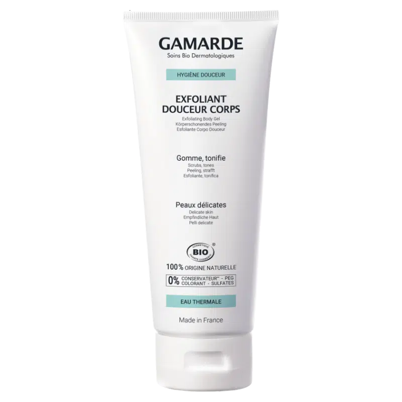 The Exfoliant Douceur Corps is a gentle foaming gel scrub with natural coloring. Ensures soft, toned skin and removes dead skin cells.