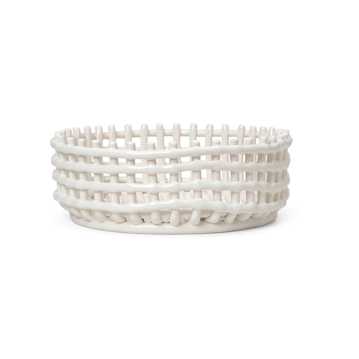 Das Keramik Centerpiece von ferm Living ist ein einzigartiger Korb für deinen Couch-oder Esstisch. Die Keramikschale verbindet die traditionelle dänische Handwerkskunst des Korbflechtens mit der Töpferei. Mit den dezenten Farben und dem zeitlosen Gitterlook ist der Korb ideal für Esszimmer und Küche geeignet. Das Centerpiece eignet sich außerdem als Obstschale, als Brotkorb, für Snacks und Leckereien, oder sogar für die Aufbewahrung persönlicher Gegenstände.