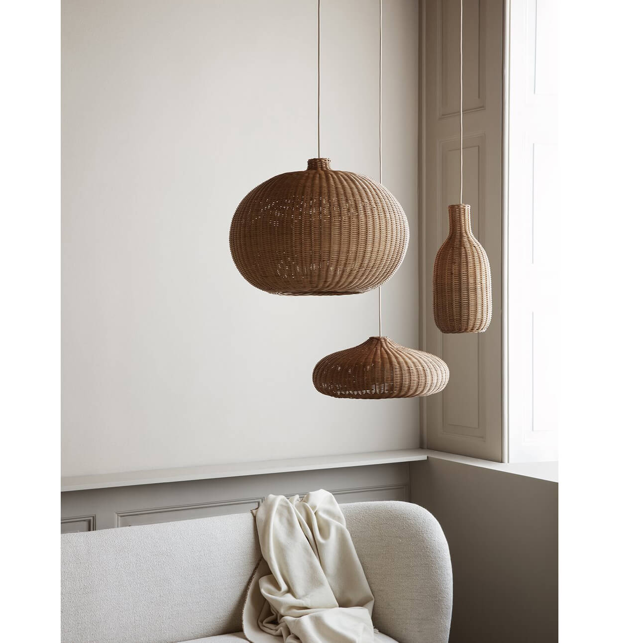 Dieser breite, organisch geformte Lampenschirm ist aus geflochtenem Rattan und bietet eine schöne und weiche Lichtquelle im Wohn-, Kinder- oder Schlafzimmer. Die Formen der ferm Rattan-Lampenschirme sind mitunter teilweise unsymmetrisch. Durch die tolle Rattanstruktur scheint durch die Seiten des Lampenschirms sanftes Licht während das Loch nach unten hin einen fokussierten Lichtstrahl abgibt. Die wunderschöne Rattanlampe passt zu vielen verschiedenen Einrichtungsstilen und lässt jedes zu Hause in einem gemütliches Ambiente erstrahlen.