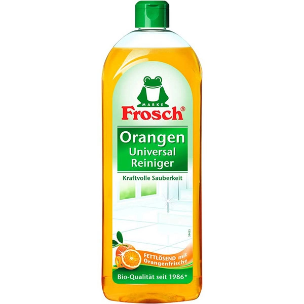 Die umweltfreundliche Alternative: der Frosch® Orangen Allzweckreiniger. Dieser Universalreiniger bietet eine kraftvolle Reinigung aller Böden und Oberflächen im Haushalt, in Firmen oder in Büros. Zuverlässig und rückstandsfrei reinigt er dank seiner leistungsstarken Rezeptur jeden Schmutz und selbst hartnäckiges Fett. Der angenehm frische Orangenduft beseitigt unangenehme Gerüche und bereichert den Raum mit dieser fruchtigen Frische, bei jeder Reinigung.