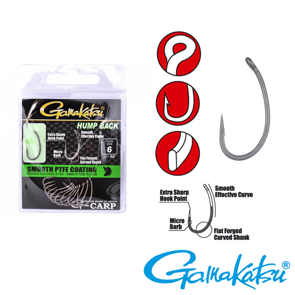 Weiter lässt sich der Mikro-Widerhaken sehr leicht lösen und reduziert die Verletzung im Fischmaul auf ein Minimum. An einer kurzen Linie Aligner Montage hakt der neue Gamakatsu Humpback extrem schnell! Für das sehr populäre KD Rig ist diese Form perfekt geeignet.Die sehr feine, dünne Spitze dringt schnell ein und unterstützt die perfekten Hakeigenschaften des Gamakatsu Humpback.
