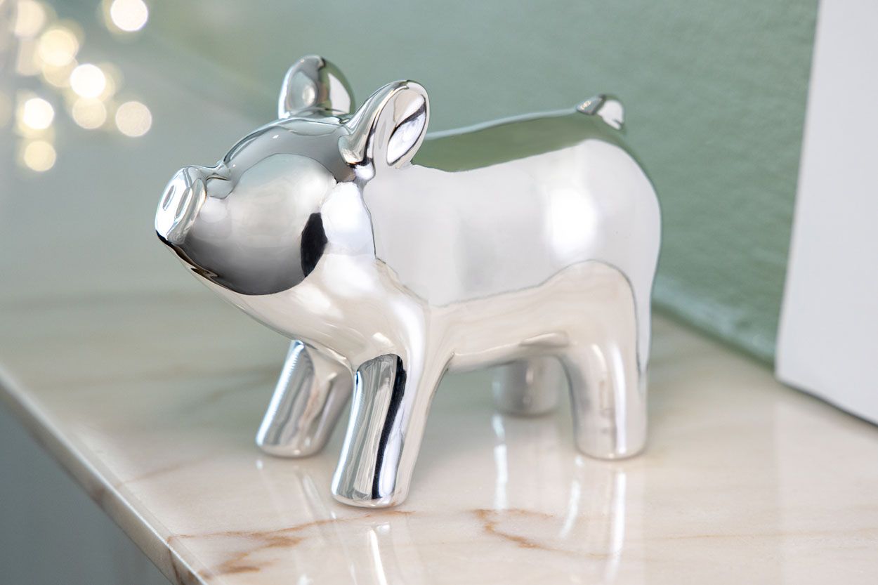 Das silberglänzende Porzellanschwein ist toll für die Tischdekoration an Silvester oder einfach als Geschenk an Jemandem, dem man ganz viel Glück wünscht!