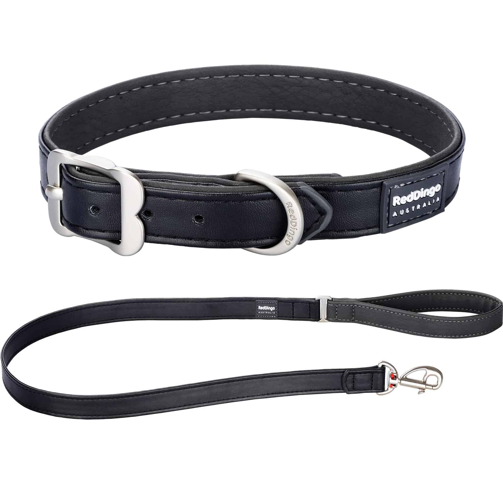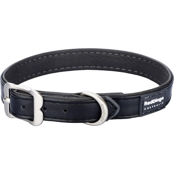 Red Dingo schwarzes veganes Kunstleder Hundehalsband und Hundeleine