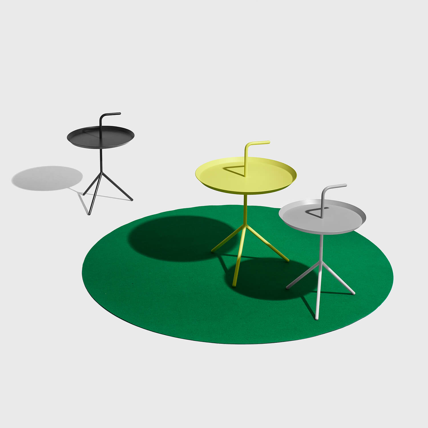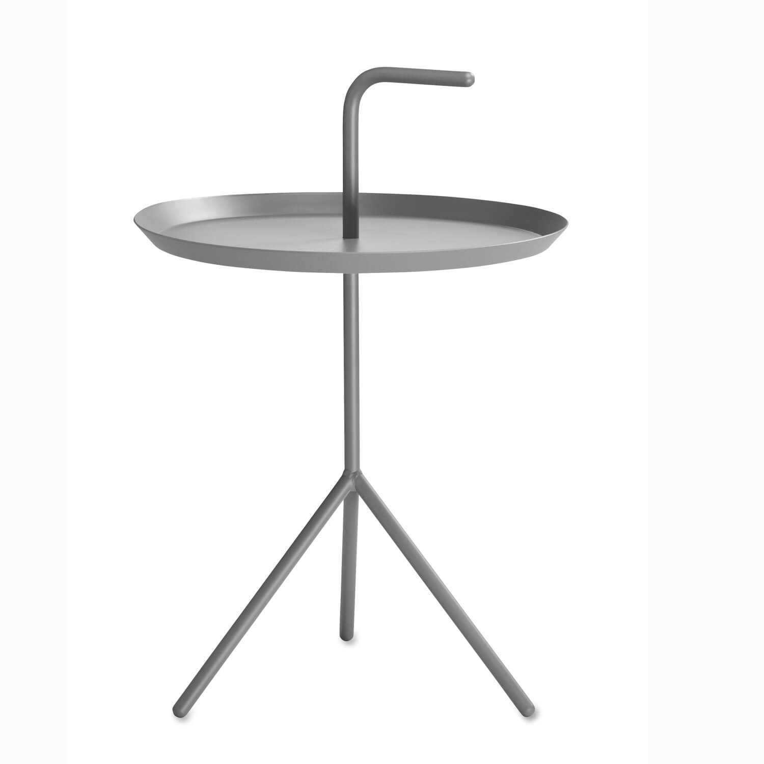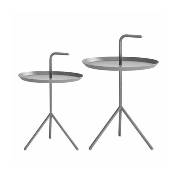 Den HAY DLM Tisch Grau hat der Designer Thomas Bentzen aus Kopenhagen entworfen. Der Beistelltisch spricht für sein klares und geradlinige Design-Verständnis des dänischen Designers. Die drei Füße des Stahlgestells geben dem Tisch Standfestigkeit. Die Platte liefert ausreichend Platz, um auf ihr das Nötigste abzulegen. Der wie ein Spazierstock geschwungene Griff gibt den Tisch seinen Namen Don´t leave me oder noch einmal deutlich: Nimm mich mit! Ob zum Sofa, neben den Sessel oder ans Bett. HAY DLM Tisch Grau ist die perfekte Alternative zu den sonst oft so schweren und unbeweglichen Beistelltischen. Und angesichts dieser schlichten Schönheit käme wohl auch niemand auf die Idee, das Möbelstück allein zurück zu lassen.