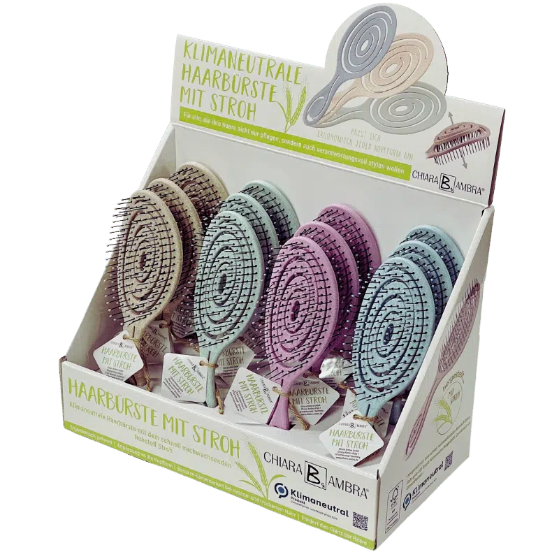 Set de revente de 3 brosses à cheveux en paille dans chacune des quatre couleurs (naturel, rose, bleu, vert) de CHIARA AMBRA® (total de 12 brosses à cheveux)