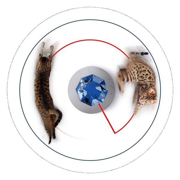 Unterhaltung auf Knopfdruck: Das automatische Laser-Katzenspielzeug Swisspet Laserdiamant strahlt einen Laserstrahl von seinem „Kopf“ auf den Boden aus, und der Punkt läuft in einem zufälligen Muster um das Spielzeug herum und um es herum.