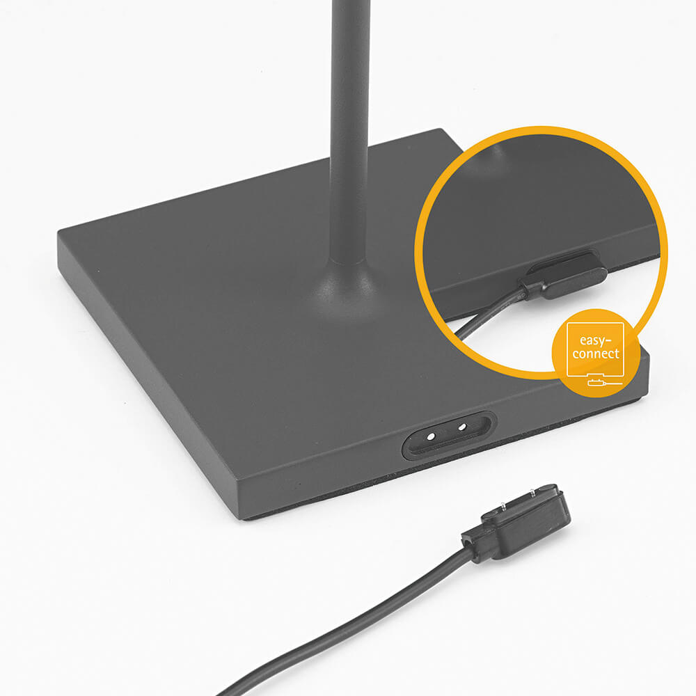 Diese Akkuleuchte ist das perfekte Licht-Accessoires für gemütliche Stunden! Leicht, kompakt und klar im Design findet diese Leuchte überall ihren Platz. Egal, ob auf dem gedeckten Tisch als Alternative zu Kerzen, im Wohnzimmer, als Nachtischleuchte oder auf Terrasse und im Garten. Durch ihre spritzwassersichere Eigenschaft ist sie drinnen wie draußen einsetzbar. Sie ist mit einem wiederaufladbaren Akku ausgestattet, der durch eine elegante magnetischer Ladebuchse am Lampenfuß geladen wird. Für die richtige Stimmung sorgt der stufenlos dimmbare Touchschalter auf dem Lampenschirm. Mit einer mindestens 9 Stunden betragenden Akkulaufzeit ist der kabelloser Betrieb an jedem Platz Ihrer Wahl möglich.