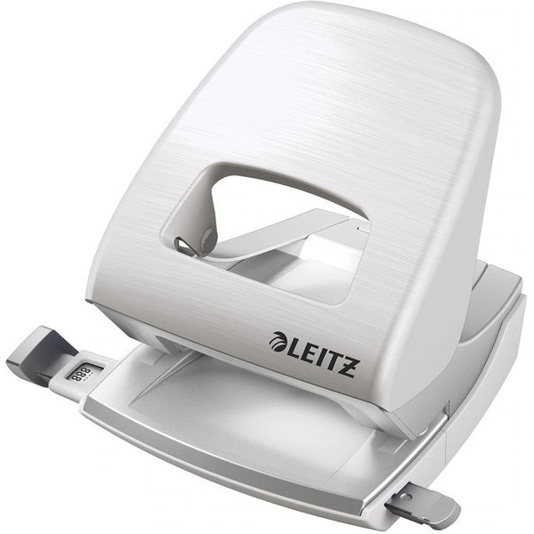 Der LEITZ Locher NeXXt Series Style 5006 aus Metall mit einer Stanzleistung von 30 Blatt (Papier 80 g/m²), mit stabil einrastende Anschlagschiene, einstellbar auf DIN A4, A5, A6, Folio, US-Quart, 80 x 80 x 80 mm und Ringbuchlochung. Mit praktischem Griff aus Kunststoff und patentiertem Metallbügel für geringem Kraftbedarf dank scharfem Lochstempel und gutem Halt dank rutschfestem Kunststoffboden.