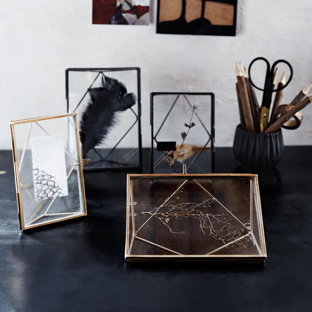 Mit diesen filigrane Madam Stoltz Bilderrahmen Schwarz L (ca. 20 x 25 cm) aus doppelwandigen recyceltem Glas setzt du nicht nur Bilder, Fotografien, sondern auch getrocknete Pflanzen wunderbar in Szene. Das Metall des Rahmens ist schwarz lackiert und haben ein Lederband zum Aufhängen. Die Rahmen im typischen Used- und Vintagelook haben typischen Eigenschaften wie Kratzer (auch im Glas), leichte Schrammen sowie Farbunregelmäßigkeiten auf der Oberfläche. Dies sind gewollte Eigenschaften des Herstellers Madam Stoltz! Betrachte daher Unebenheiten wie Kratzer, kleinere Dellen und Farbunterschiede nicht als Verarbeitungsfehler oder Defekt, sondern als Indiz individueller Handarbeit und somit auf ein wirkliches Unikat! Wer den Vintagecharakter und das „Unperfekte“ nicht mag, sollte von diesen Rahmen absehen!