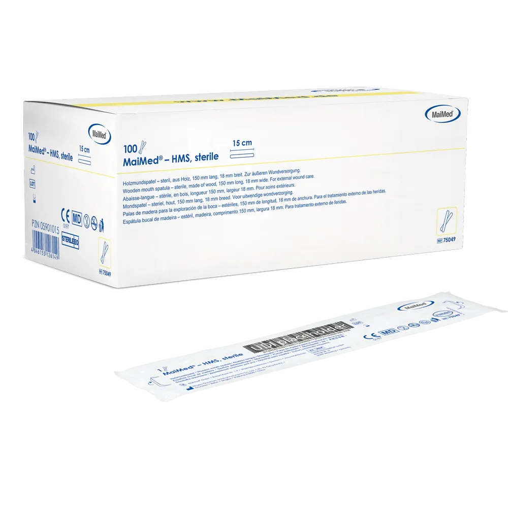 Der MaiMed® HMS Holzmundspatel eignet sich hervorragend zur Inspektion der Mundhöhle und des Rachenraums. Zudem kann er zum Auftragen von Cremes, Salben und anderen Flüssigkeiten verwendet werden. Wählen Sie je nach Anwendungsbereich die sterile oder unsterile Variante. Nach einmaligem Gebrauch sollte der Spatel ordnungsgemäß entsorgt werden, um höchste Hygienestandards zu gewährleisten.