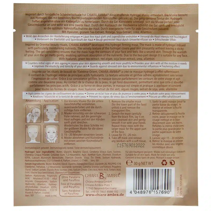 Le noble masque facial en hydrogel noir dans un design haut de gamme de Chiara Ambra.