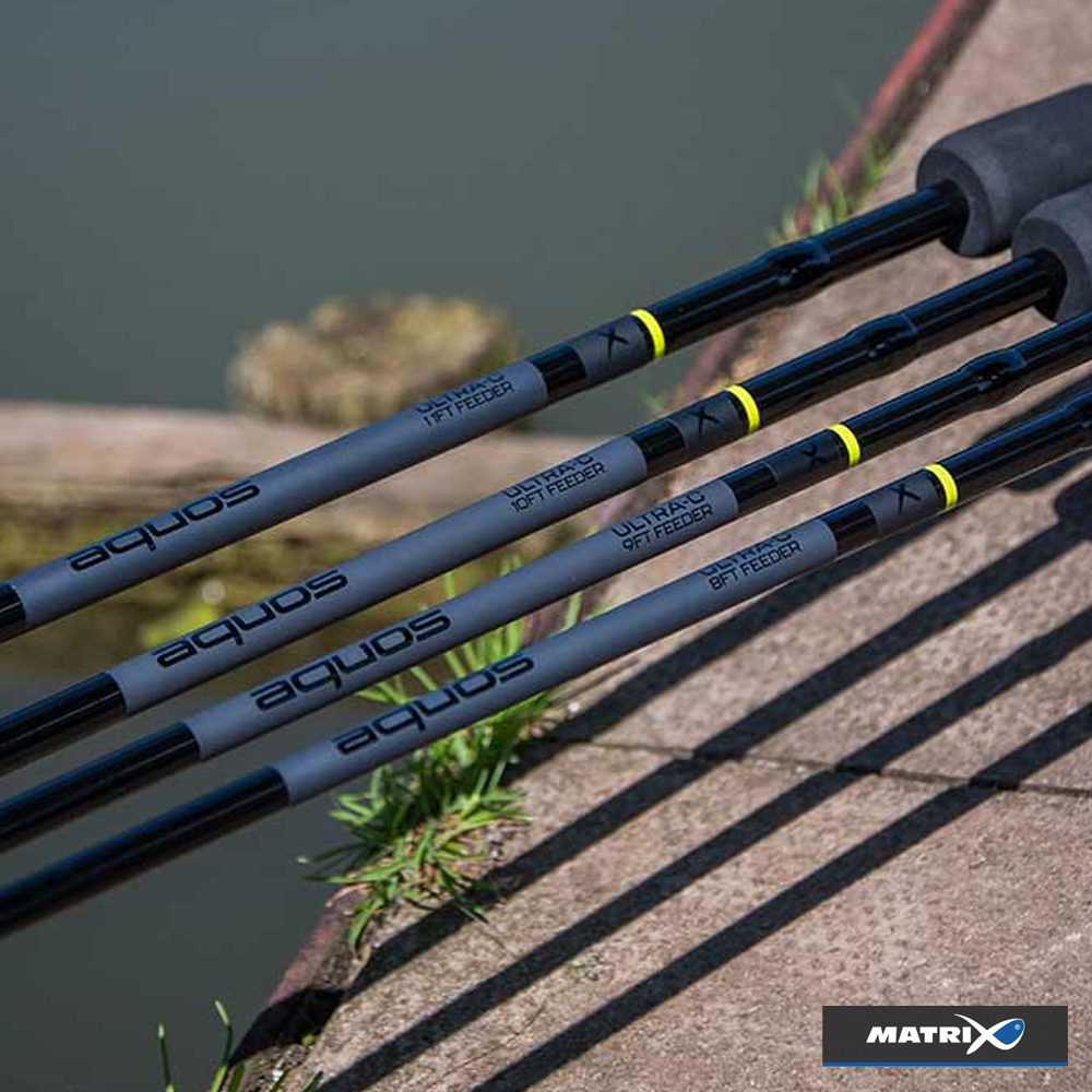 - Vier Feederruten, die alle Feedertaktiken an kommerziellen Gewässern abdecken.