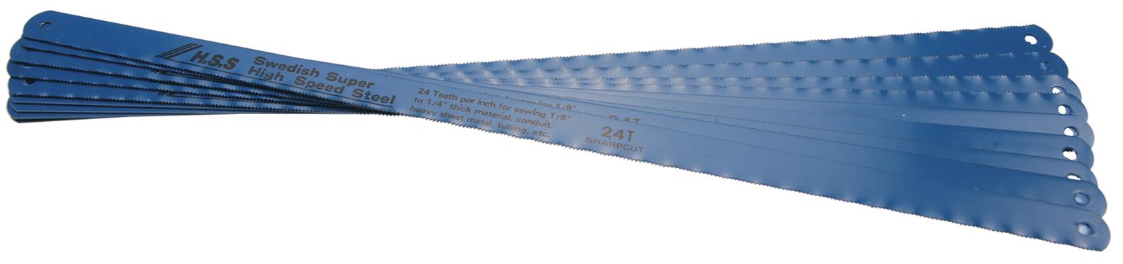 Metallsägeblätter in 13 mm Breite und 300 mm lang. HSS flexibel im 10er Pack. 24 Zähne/Zoll.
