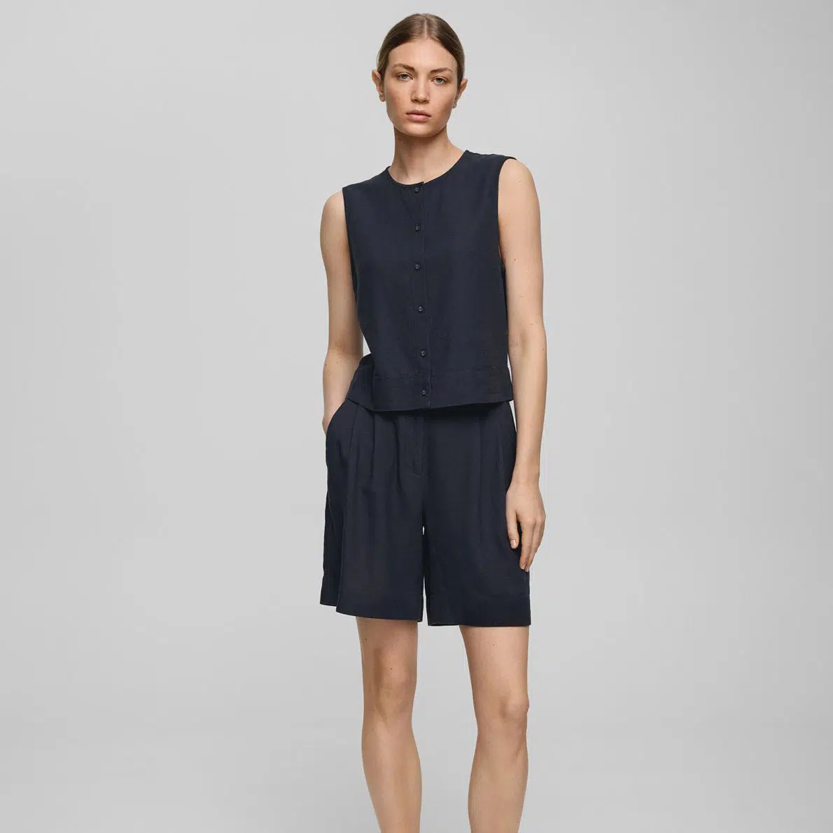 Die Moss Copenhagen Leinen-Shorts Phantom gibt es in 4 Größen: XS, S, M und L. Bereit für den perfekten Mix aus schlichter Eleganz und sommerlicher Leichtigkeit? Unsere dunkelgrauen Leinen-Shorts sind das ideale Piece, um deinem Outfit einen edlen, aber gleichzeitig entspannten Touch zu verleihen. Der zeitlose Farbton passt sich mühelos jeder Garderobe an und lässt sich sowohl für Business- als auch für Freizeitlooks stylen.