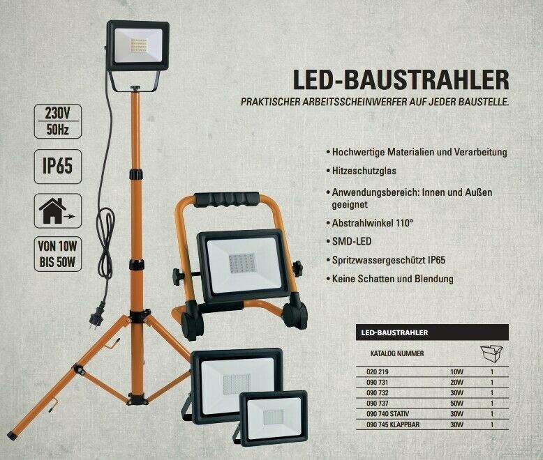 MOTIVE LED Baustrahler Arbeitsscheinwerfer Arbeitsleuchte Stativ Halter vob 10W bis 50W