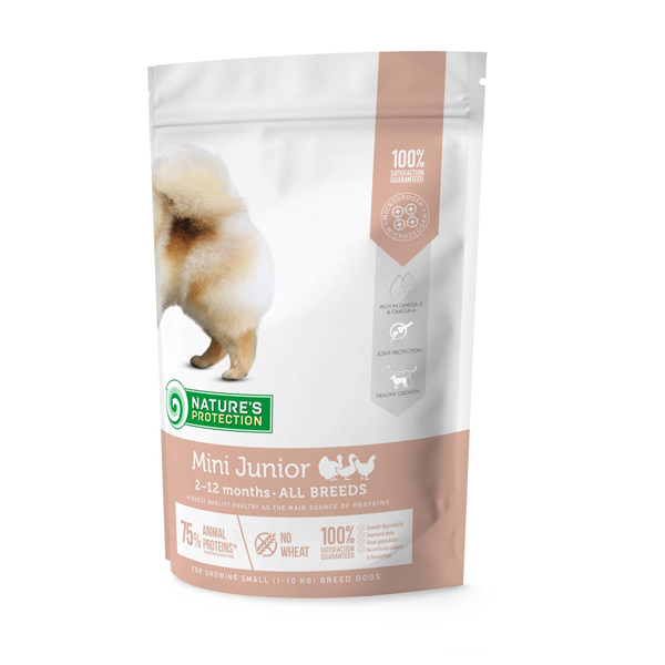 Natures Protection Mini Junior wird aus natürlichen Zutaten hergestellt und ist frei von künstlichen Farb-, Aroma- und Konservierungsstoffen. Es bietet eine gesunde und ausgewogene Ernährung für junge Hunde kleiner Rassen. - Optimale Pelletgröße für kleine Mäuler