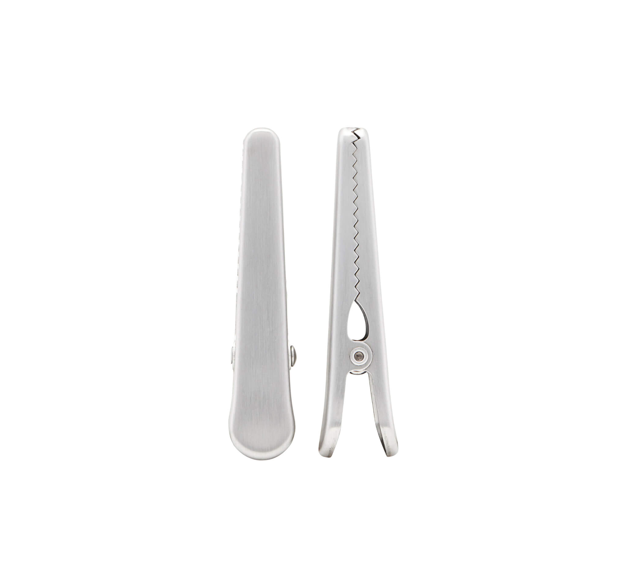 Die smarten Nicolas Vahé Klammern im Silber-Finish, aus rostfreien Stahl, sind ein Muss in deiner Küche. So kannst du deine geöffneten Tüten einfach wieder verschließen.