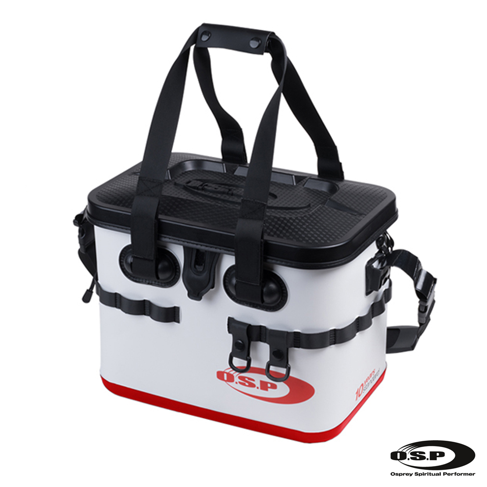- An der Aussenseite befindet sich ein Tool-Band worin verschiedenes Werkzeug (Rutenhalter, Zangen etc.) für den schnellen Zugriff befestigt werden kann, weiters befinden sich darauf 2 abnehmbare D-Ring Halterungen.