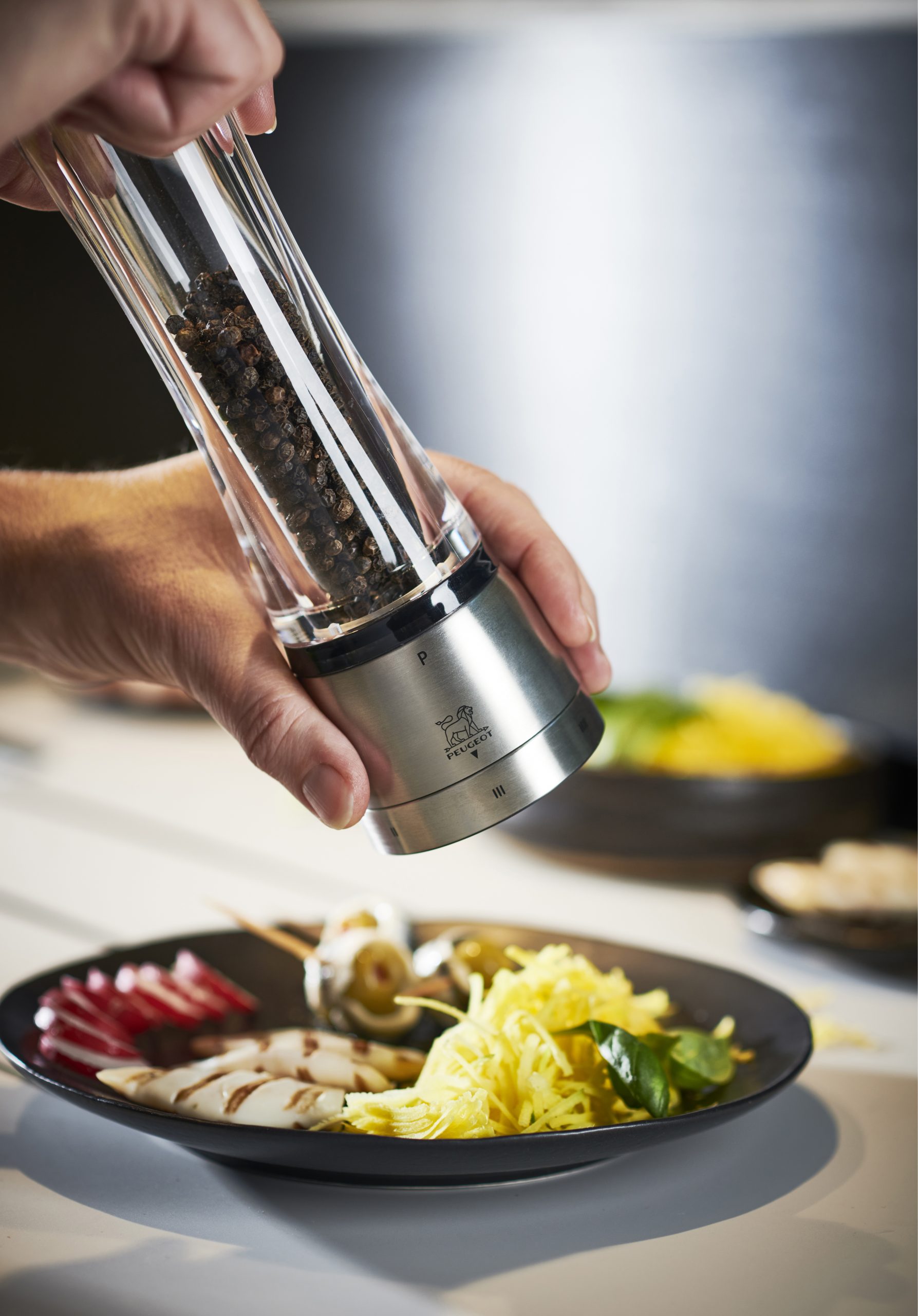 Die Peugeot Pfeffermühle Daman ist ein unverzichtbares Werkzeug für alle Feinschmecker und Köche. Die langlebige und hochwertige Verarbeitung garantiert jahrelangen Genuss beim Würzen Ihrer Gerichte und dank des u’Select Mahlwerks können Sie ganz einfach zwischen 6 Mahlgraden wählen und somit jedes Gericht perfekt abrunden.