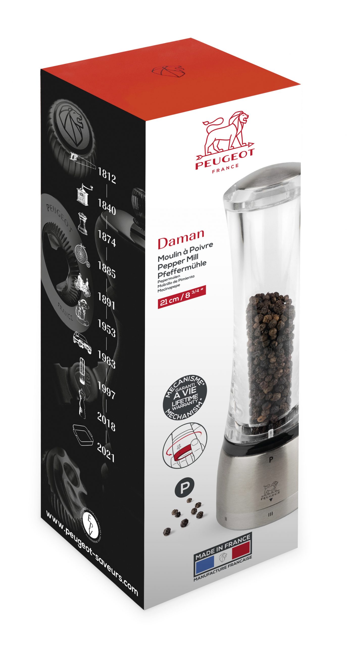 Das klassische und elegante Design der Peugeot Pfeffermühle Daman macht sie zu einem Blickfang in jeder Küche. Egal, ob beim Kochen für die Familie oder bei einem festlichen Dinner mit Freunden – die Peugeot Pfeffermühle wird Sie immer wieder begeistern.