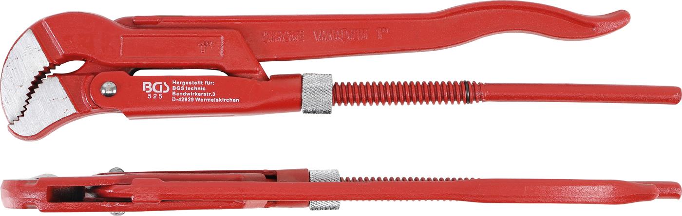 Profi-Eckrohrzange in 1″, 3-Punkt-Haftung. Rote Lackierung, polierte Backen, kein Abrutschen.