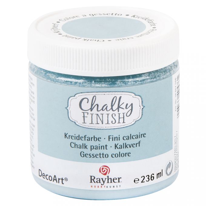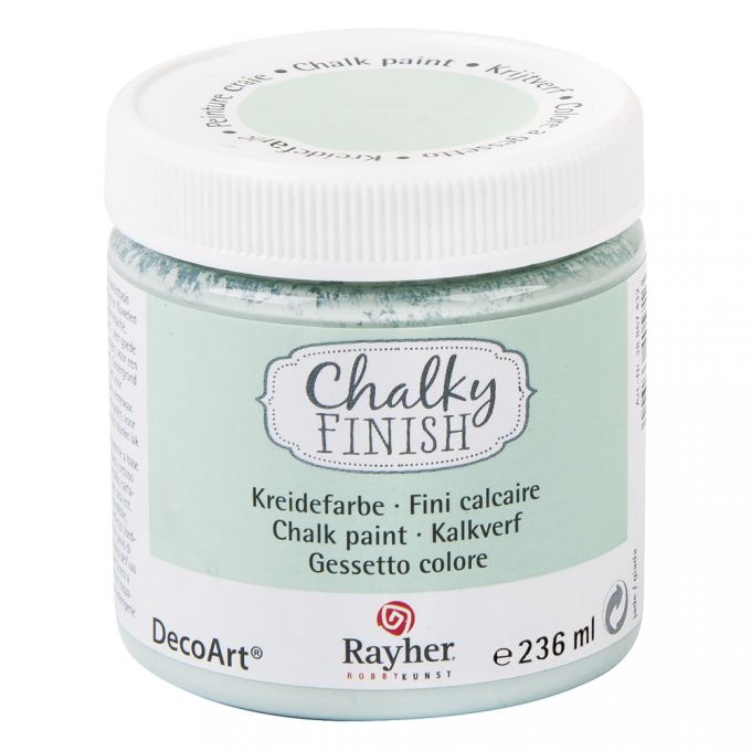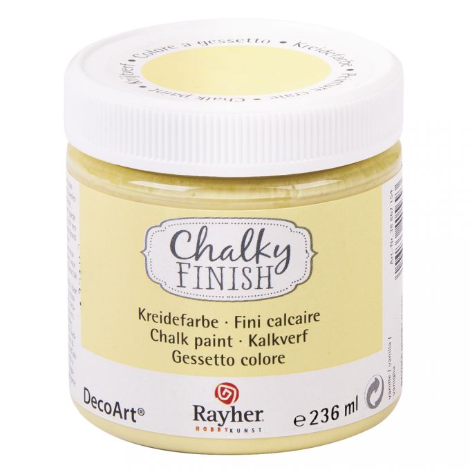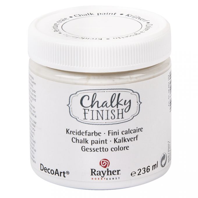 Du kannst Chalky auf Untergründen wie Holz, Metall, Keramik, Pappmaché, Kunststoff, Heimtextilien oder an einer Wand verwenden. Die Farbe ist leicht verstreichbar und hat durch den hohen Kreideanteil eine sehr hohe Deckkraft. Zum Versiegeln verwendet man im Indoorbereich Cremewachs und im Outdoorbereich einen Klarlack – beide verändern den einzigartigen Chalky-Look nicht. Deiner Kreativität sind keine Grenzen gesetzt: Ob mit Schablonen, Schleif-Techniken, einem Krakelier-Medium für Oberflächen in Reiß-Optik oder mit einer zwei Farb-Technik (nass oder trocken) – Du kannst dich frei entfalten. Eine Dose reicht für eine Fläche von circa 5,57 m².