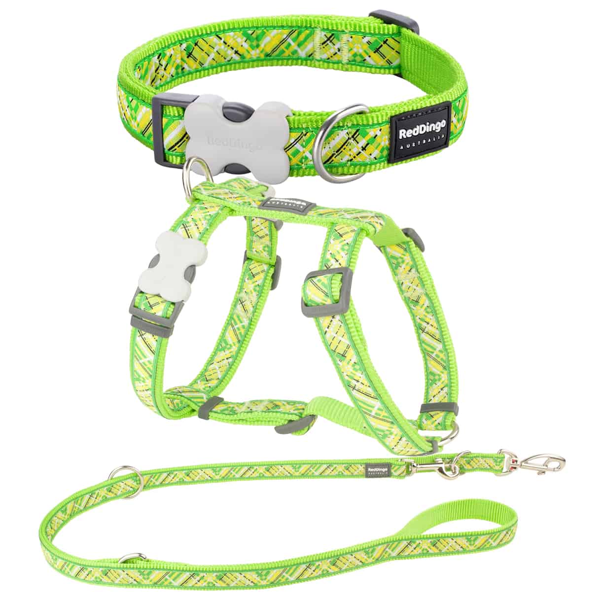 Hundegeschirr Halsband und Leine Lime Grün Red Dingo