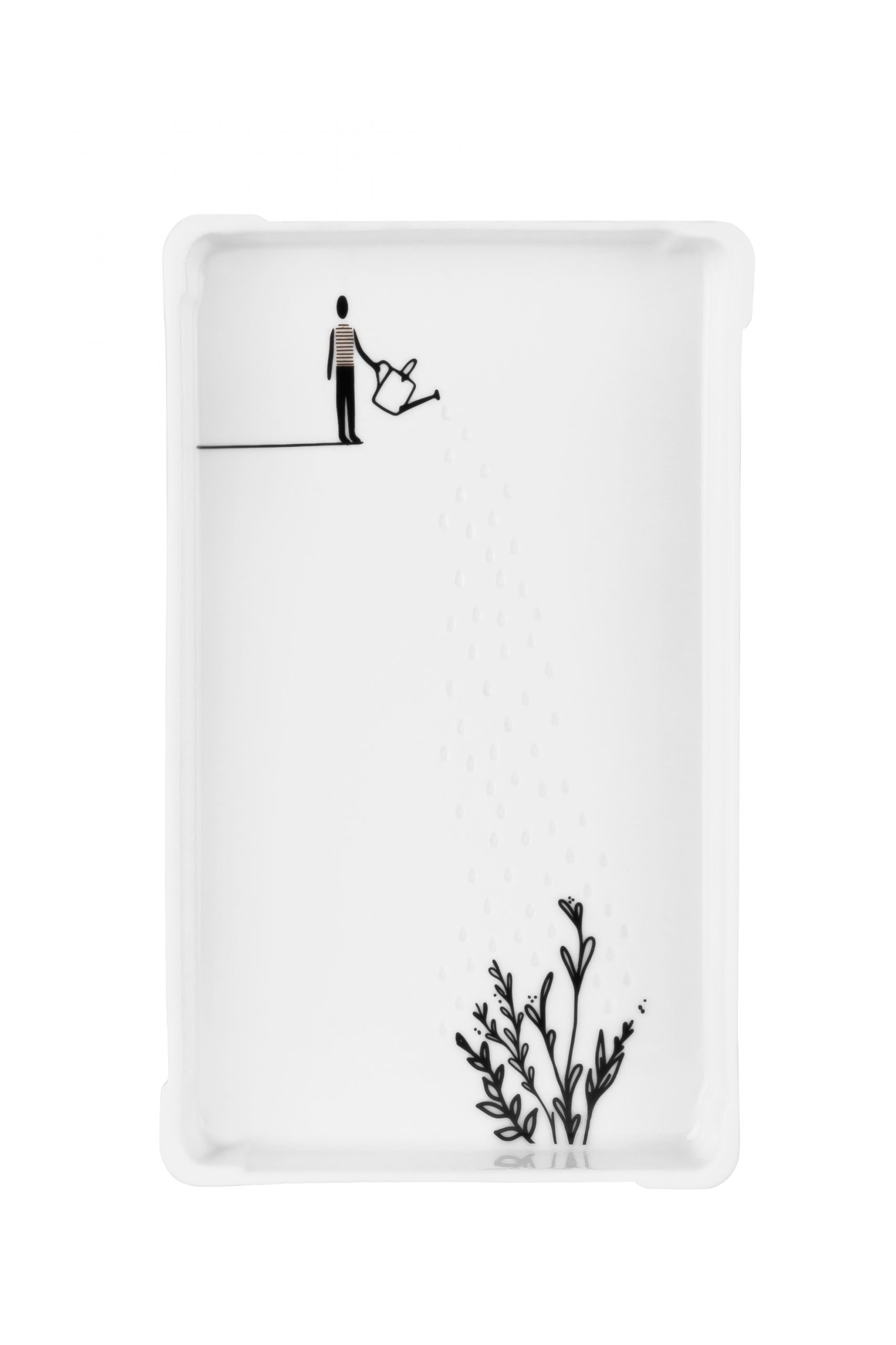 Die kleine flache Schale Gießkannenmann, mit Aufdruck einer Figur welche eine Pflanze am Boden der Schale gießt, von räder wurde mit Liebe designt und aus Porzellan hergestellt. Das Design mit Gießkannenmann machen die Schale zu etwas ganz Besonderem. Gerne wird in der kleinen Schale Schmuck abgelegt oder sie wird als kleine Seifenschale verwendet oder für Gebäck und Pralinen. Dabei sind den Einsatzmöglichkeiten keine Grenzen gesetzt!