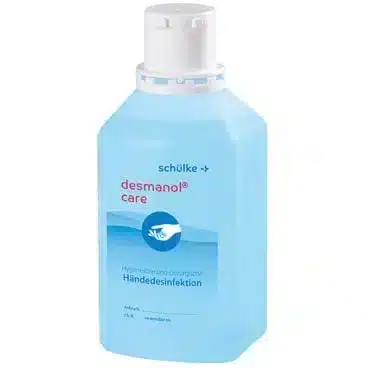 - Hygienische Händedesinfektion: Eine ausreichende Menge (ca. 3 ml) Desmanol Care auf die trockenen Hände auftragen und für 30 Sekunden verreiben, bis das Produkt vollständig eingezogen ist.