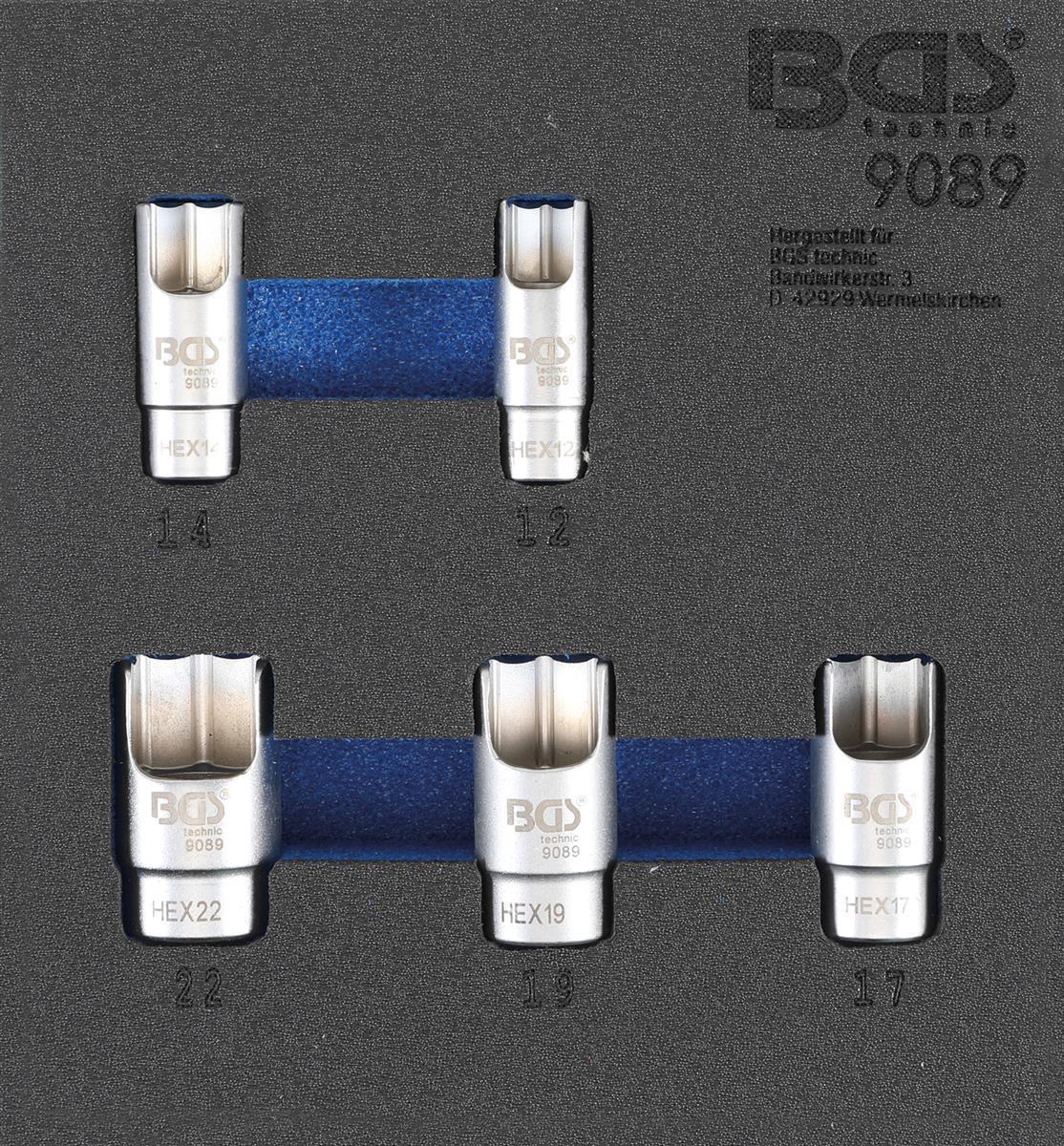 - beinhaltet 5 offene Steckschlüssel-Einsätze, SW 12 – 14 – 17 – 19 – 22 mm
