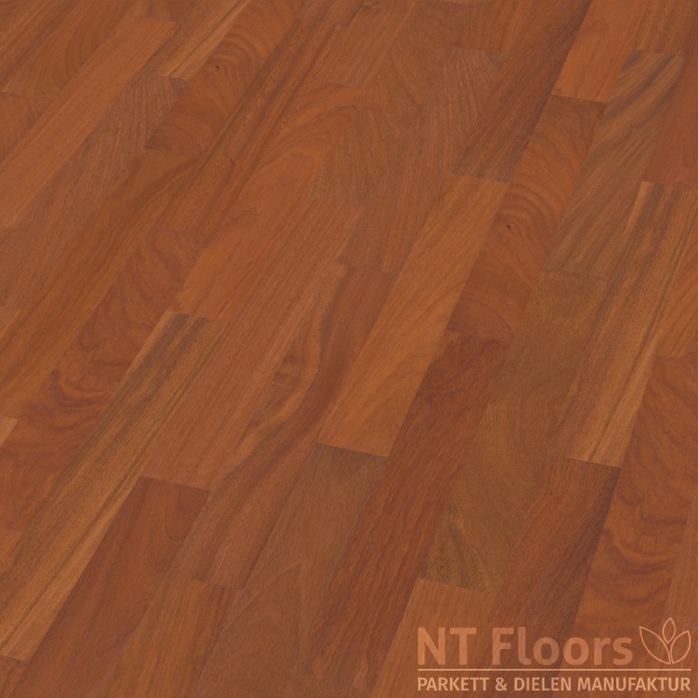 Stabparkett Doussie Afzelia besticht durch seinen harmonischen, warmen Farbton. Er ist anfänglich gelbbraun und dunkelt schnell ins rotbraun nach. Sowohl die Farbnuancen als auch die wuchsbedingten Strukturunterschiede sind ein Holzart typisches Merkmal. Stabparkett Doussie ist im Prinzip ast- und splintfrei.