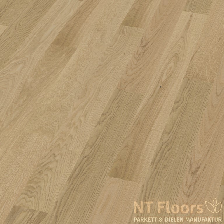Die Sortierung Naturell hat ein natürliches, harmonisches Erscheinungsbild. Dieses ist durch festverwachsene Äste bis 8mm und schwarze Punktäste bis 1mm geprägt. Die Farbe und Struktur entspricht in der Naturell-Sortierung dem natürlichen Wachstum und variiert. Massivparkett Eiche Naturell ist im Prinzip splintfrei. Insofern wirkt Stabparkett Eiche Naturell in der verlegten Fläche sowohl naturnah und ursprünglich als auch gemütlich.