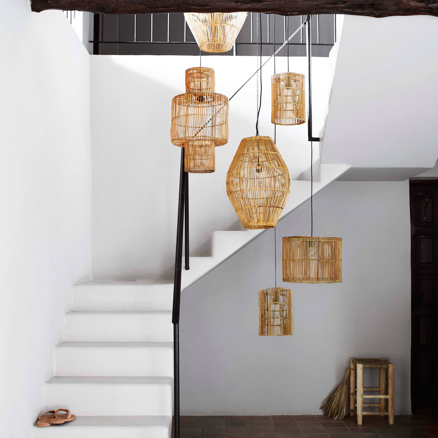 Natürlich schön in Szene gesetzt: Tine K Home Rattan-Lampenschirm Hangbird mit oder ohne Pendel misst ca. Ø38 x H70 cm. Wir bieten Lampenschirm HANGBIRD in zwei Varianten an: Einzeln oder mit wahlweise Pendel (in schwarz oder weiß). Auf Wunsch können auch mehrere Pendel dazu bestellt werden.
