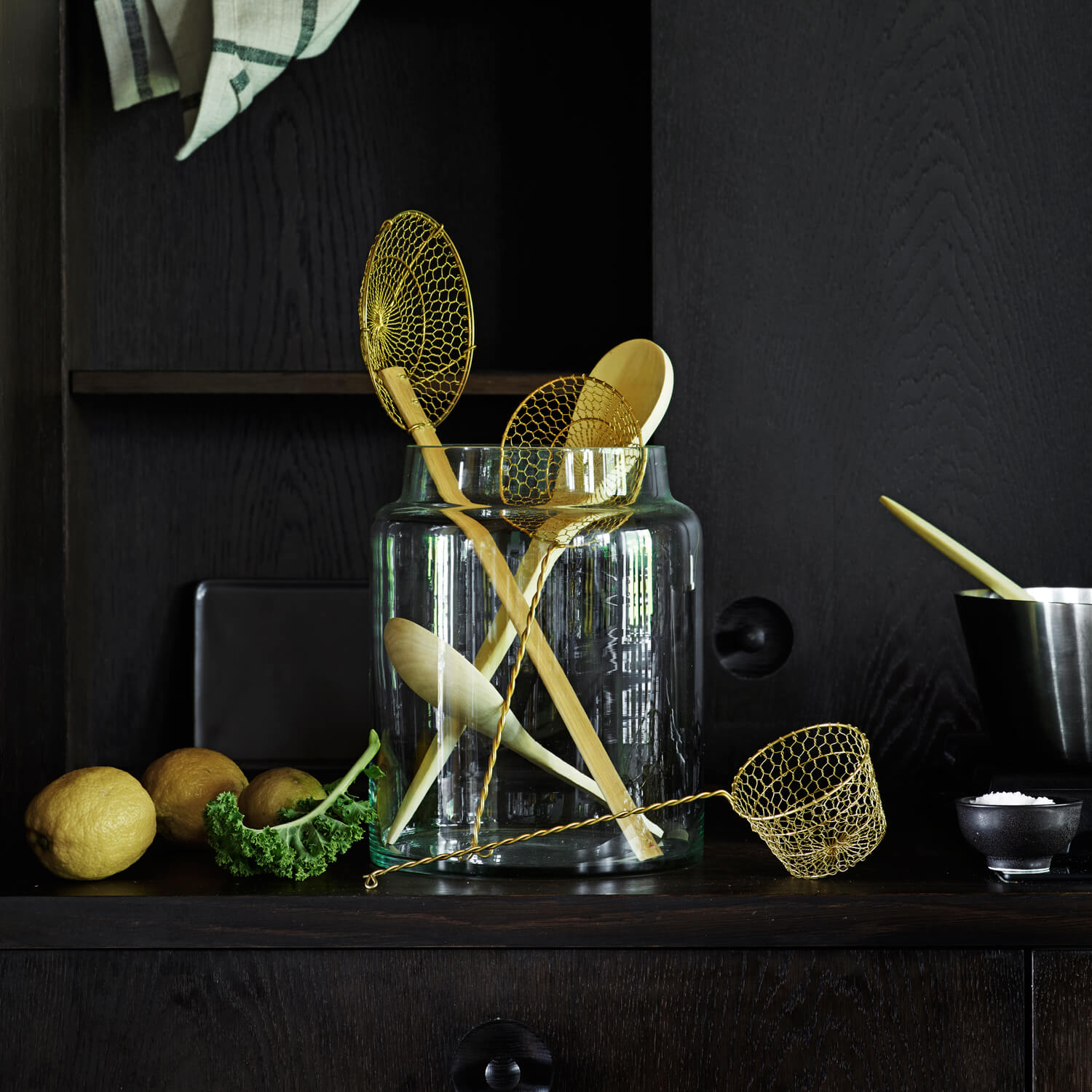 Die TineK Glasvase Hurrican M misst ca. Ø19 x H34 cm. Die Vase ist schlicht in ihrer Form, elegant durch die kleine Kurve oben und dabei schön stabil durch seine dicke Glaswand. Damit ist der Glasbehälter eine Allrounder in deinem skandinavischen Zuhause. Als Windlicht sehen Kerzen ganz bezaubernd aus, als Vase oder als Aufbewahrung für alles mögliche. Diese eignet sich besonders für normale Zweige und Blumen.