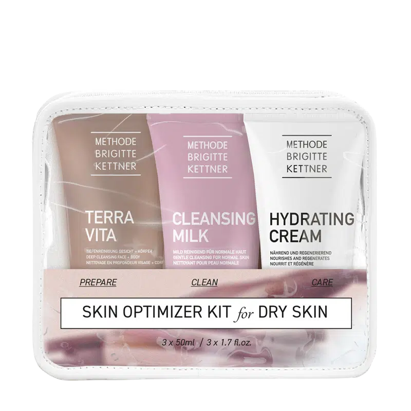 Das praktische Travel-Set «DRY SKIN» von Methode Brigitte Kettner beinhaltet drei Produkte für trockene Haut in Reisegrösse: