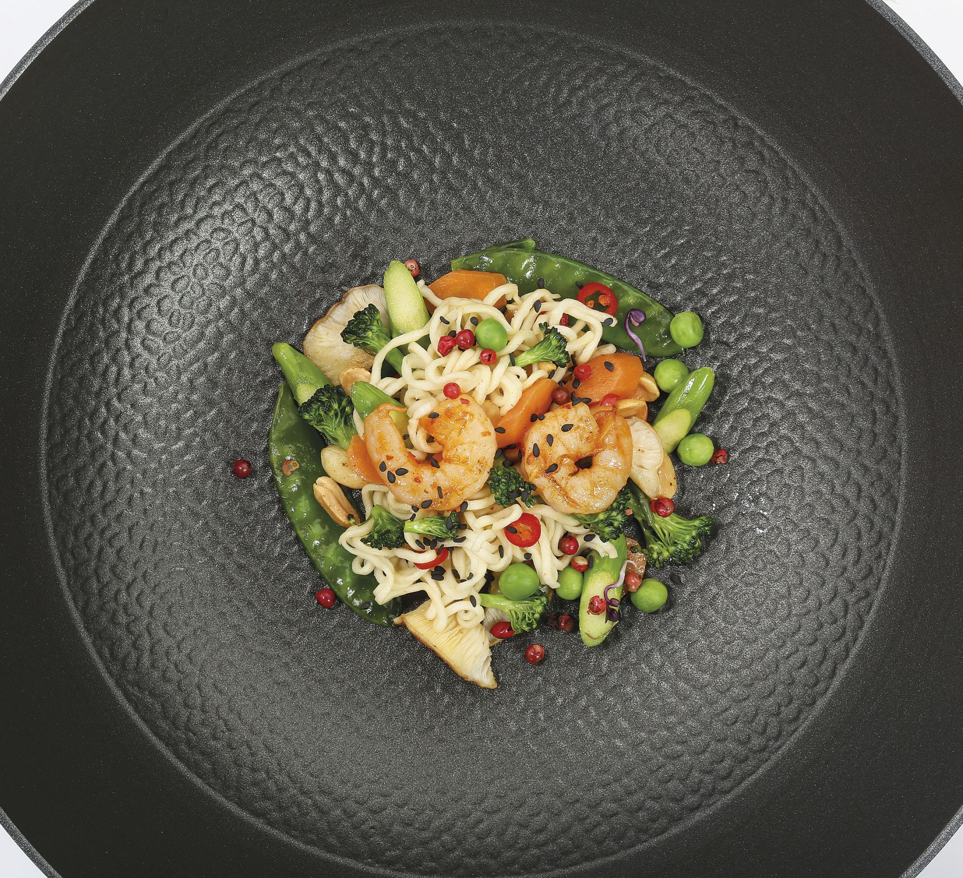 Das Geheimnis eines köstlichen Wok-Gerichts? Die unterschiedlichen Zutaten müssen auf den Punkt gegart sein. Die Wokpfanne COUNTRY ist dabei so konstruiert, dass dies garantiert gelingt. Die hochwertige Pfanne ist aus emailliertem Gusseisen gefertigt. Es leitet die Wärme schnell und gleichmäßig weiter, vom gewürfelten Fleisch bis zur Frühlingszwiebel. Dank der Antihaftbeschichtung lösen sich auch die Garnelen oder die Hähnchenstreifen ganz leicht vom Pfannenboden. Die spezielle Struktur mit Vertiefungen stellt sicher, dass sich das Fett gleichmäßig verteilt.
